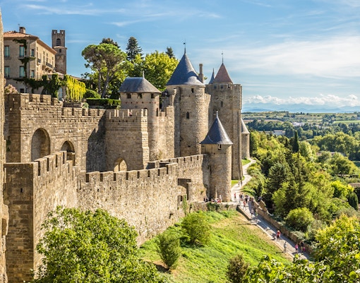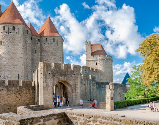 Die Festungsmauern der Cité von Carcassonne sind eines der beeindruckendsten Merkmale der Stadt. Spazieren Sie auf den Mauern und genießen Sie den Panoramablick auf die Stadt und die umliegende Landschaft. Die Festungsmauern sind auch ein großartiger Ort, um etwas über die Geschichte und Architektur der Burg zu erfahren.